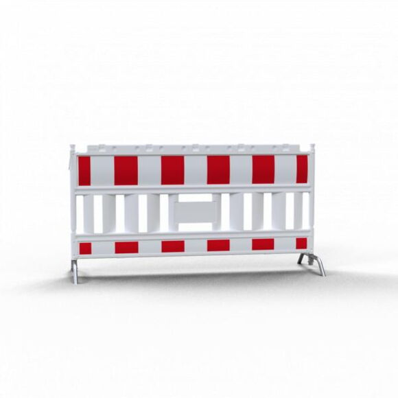 Дорожна панельна огорожа EURO2, тип Nox, матеріал пластик, сталеві ніжки, плівка RA1/A, червона/біла, з/із захистом країв плівки, висота секції 250 мм та 100 мм відповідно, з місцями встановлення змінних адаптерів, довжина 2,00 м, висота 1,00м
