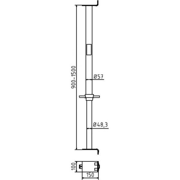 Повітроводна (канальна) розпірка „Perfect“ Ø 48 мм, для цивільного будівництва, для кріплення та підтримки стін каналів, відповідає вимогам DIN 4124 з випробувальним ярликом TBG-4P 48, шпиндель: Ø 48,3 мм, зовнішня труба: Ø 57 мм, опорний кутник 100 мм х 150 мм з обох сторін
