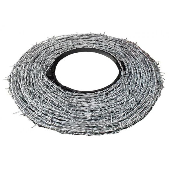 Колючий дріт виготовлений з важкого оцинкованного дроту 2-жильний, 4-х шиповий, верхня відстань 100 мм товщина 1,7 мм
