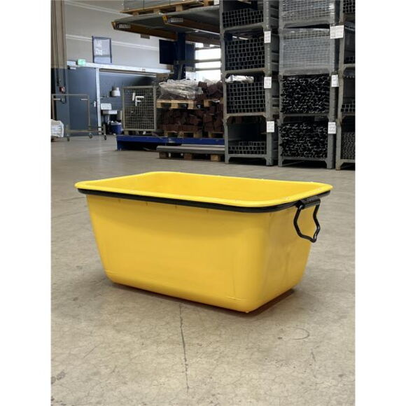 Лоток для бетонної суміші, виготовлений з міцного та ударостійкого HDPE (High Density Polyethlen) з/із високою щільністю, УФ-стабілізований, для транспортування розчину та інших матеріалів на будівельному майданчику, з/із пофарбованою сталевою рамою, переміщення краном, номінальне навантаження 500 кг., довжина: 1050 мм, ширина: 705 мм висота: 490 мм