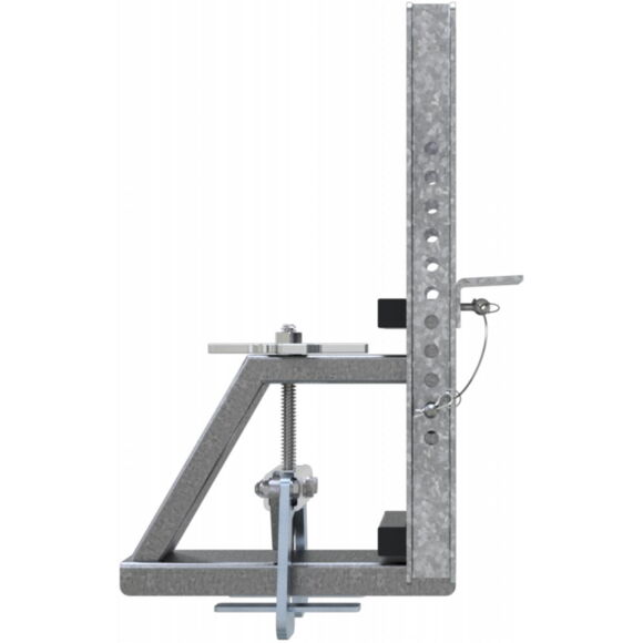 Опора для встановлення на балку дерев’яної опалубки H20, для опалубки кромок і плит, за допомогою шпинделя фіксатор захоплює балку H20 і фіксує затиск балки, регулювання висоти здійснюється за допомогою невикидного болта в сітці отворів, оцинкована