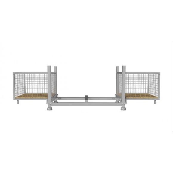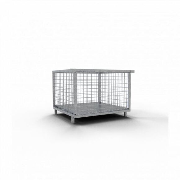 Міцний сталевий контейнер з дерев’яною нижньою вставкою, використовується разом з піддоном каталожний номер 50115, під’єднується до лицьової сторони штабельного піддону без необхідності використання інструментів, автоматично блокується, внутрішні розміри: довжина: 0.70 м, ширина: 0.78 м, висота: 0.53м, оцинкований