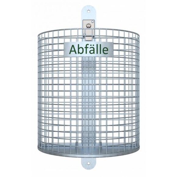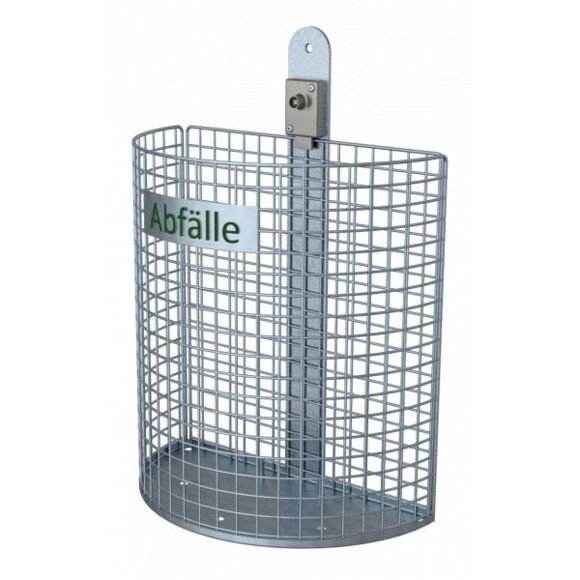 Контейнер для відходів для кріплення на стінах або стовпах, форма напівкола, висота 430 мм, об´єм 27 літрів, Ø 210 x 400 мм, в комплекті з рейковим кронштейном і квадратним ключем каталожний номер 4037