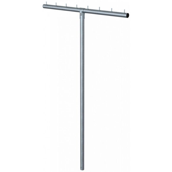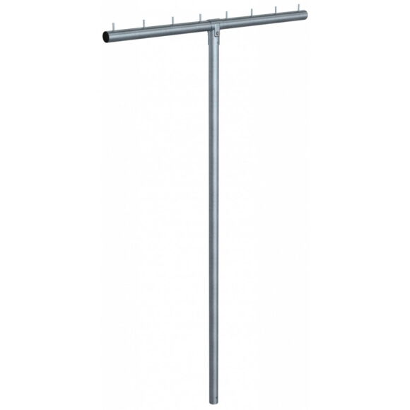Підставка для сушіння білизни T-подібна форма, сталева труба Ø60мм, поперечна труба, вісім гачків Ø10x40мм, Т-з´єднувач, двостороння, з/із болтом м10, висота: 2500мм, ширина 1500мм, з/із анкером,оцинкована