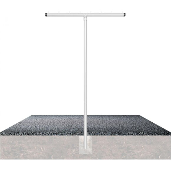 Підставка для сушіння білизни T-подібна форма, сталева труба Ø60мм, поперечна труба, вісім гачків Ø10x40мм, Т-з'єднувач, двосторонній з/із болтом м10, висота: 2500мм, ширина 1500мм, з/із анкером, оцинкована