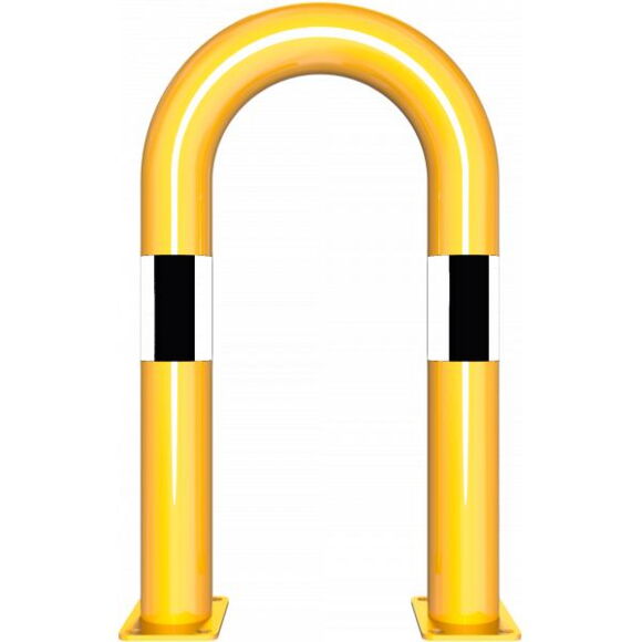Захисний бар´єр, сталева труба Ø 76 мм. Ефективний захист внутрішніх і відкритих приміщень, складів і виробничих цехів. Для забезпечення безпеки робочих зон і смуг руху, захисту машин, колон і стелажів. Оцинкований, порошкове покриття жовтого кольору, з чорними попереджувальними смугами.