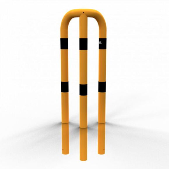 Захисний бар'єр трикутний рівносторонній 90°, сталева труба Ø 76 мм, жовтий/чорний
