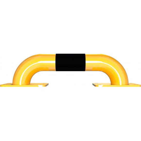 Захисний бар´єр сталева труба Ø 60 мм, з нахилом, опорна плита 100 x 150 мм, пофарбований у жовтий колір з/із чорними світловідбиваючими смугами