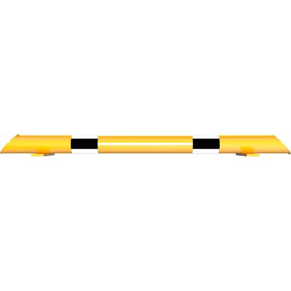 Колесовідбійник, сталева труба Ø 76 мм, з нахилом, зі скошеними кінцями, опорна плита 200 x 50 x 10 мм, пофарбований у жовтий колір з/із чорними світловідбиваючими смугами, для зупинки і захисту