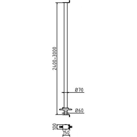 Повітроводна (канальна) розпірка „Perfect“ Ø 60 мм, для цивільного будівництва, для кріплення та підтримки стін каналів, відповідає вимогам DIN 4124 з випробувальним ярликом TBG-4P 60, шпиндель: Ø 60 мм, зовнішня труба: Ø 70 мм, опорний кутник 100 мм х 150 мм з обох сторін, пофарбована у коричневий колір