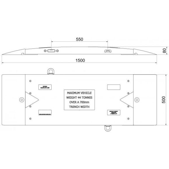 Пластиковий елемент траншейного мосту, 1500 мм x 500 мм, навантаження до 44 т, кілька елементів можна з’єднати сталевими затискачами, навантаження на одне колесо 6 т при ширині траншеї 700 мм, протиковзка поверхня для безпеки