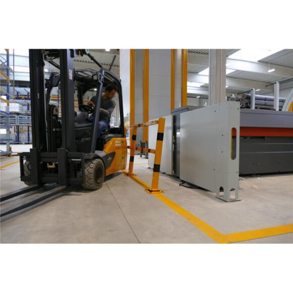 Стаціонарний пост гнучкий, нахиляється для захисту підлоги холу (компенсує удари, не відриваючись від підлоги), з опорною плитою 220 x 220 мм, з жовтим покриттям, висота 1100 мм