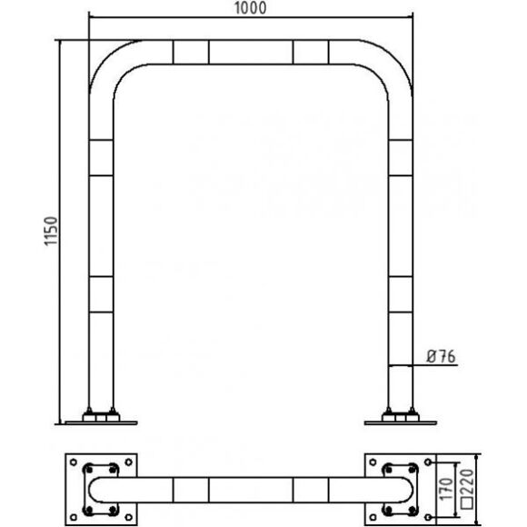 Захисний бар´єр гнучкий, нахиляється для захисту підлоги холу (компенсує удари, не відриваючись від підлоги), з опорною плитою 220 x 220 мм